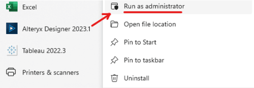 Same as the previous blog, you should open Alteryx Designer as an Administrator by right-clicking on Alteryx and choosing Run as administrator (Image 1). The reason to do this is that we will need to install the package in the Python tool later. Only the administrator role can install the new package.