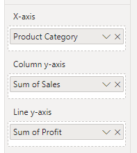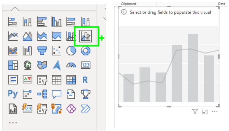 Click on the empty canvas in Power BI and select the Line and Clustered Column Chart. An empty chart will appear on the screen.