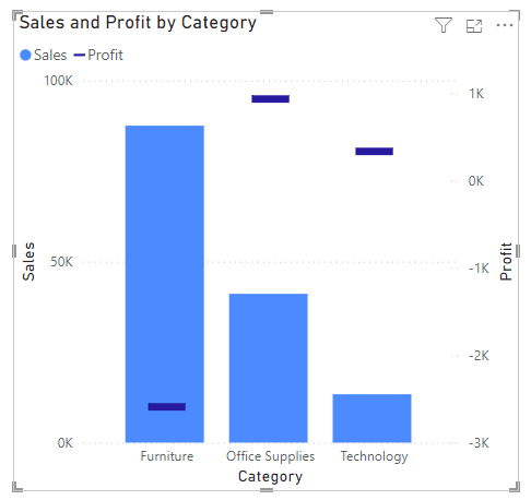 You now have a bar chart with Gantt-like lines! This visualization allows you to compare metrics (like sales and profit) effectively while presenting the data in a visually engaging manner.