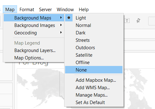 The final step is formatting. If you haven't noticed yet there is still a map in view to remove this go into Map -> background maps -> select none.