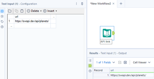 Drag and drop the Text Input tool into the canvas and copy the API link above to a cell in the Text Input tool.